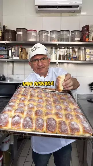 Mini bisnaga de leite condensado e açúcar Ingredientes: 1kg de farinha, 140g de açúcar, 10g de sal, 80g de margarina, 3 ovos, 40g de fermento fresco, 400ml de água, 100ml de leite condensado e 60g de açúcar cristal #pão #bisnaga #Receita
