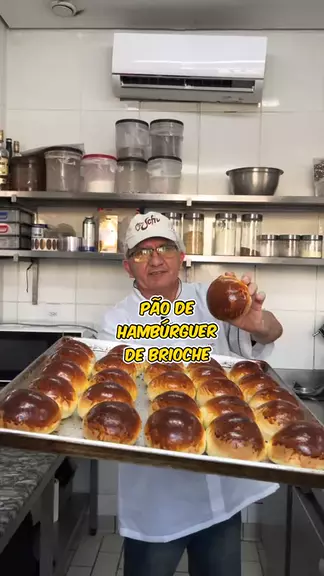 Pão de hambúrguer de brioche Ingredientes: 1kg de farinha, 150g de açúcar, 10g de sal, 10g de melhorador, 150g de margarina, 100ml de gema, 3 ovos, 40g de fermento fresco e 350 ml de leite #pão #hambúrguer #Receita