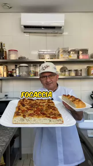 Focaccia Ingredientes: 1kg de farinha, 600ml de água, 20g de sal, 100g de levain, 100g de tomate cereja, 60g tomate seco, 30g alecrim, 10g de sal grosso e 20ml de azeite #focaccia #pão #Receita