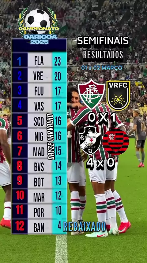 Campeonato Carioca 2025, resultados das semifinais,do dia 01 a 02 de Março,jogos de Ida. #Carioca #futanalise #vocesabia #20250303