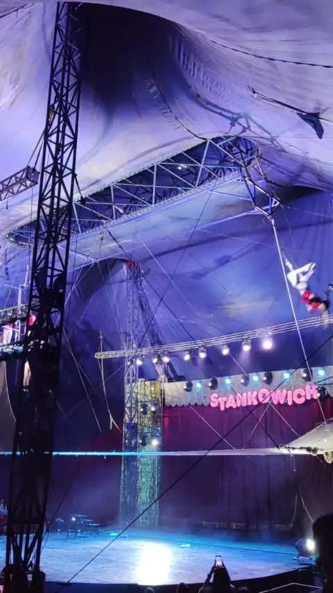 Trecho do espetáculo dos trapezistas do circo Stankowich. #circo #stankowich #sorocaba #trapezio #festa