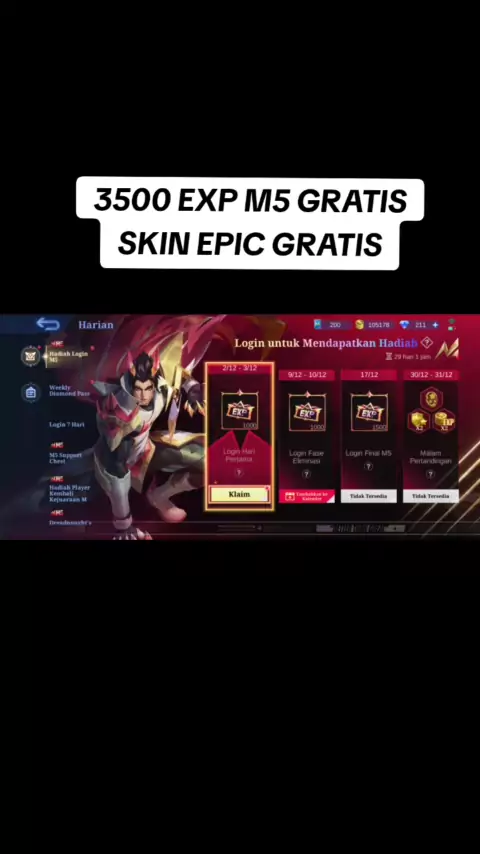 3500 EXP M5 GRATIS DAN BEBAS PILIH SKIN EPIC #Eventm5pass #eventm5mlbb #eventm5box #eventskinepicgratis #Boxskinepicgratis #mobilelegends_id #mobilellegends #mlbb2023 #skinepicgratis #eventterbarumlbb #eventbarumlbb2023 #Boxm5skinepic