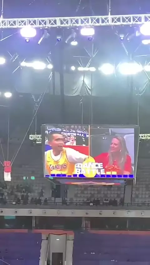 FIBA BASKETBALL WORLD CUP DANCE BATTLE ON JUMBROTRON. #Tapi Nana di sebelah kanan gua kok malu banget ya😂 #FIBAWC #WINforAll #PialaDuniaBasket #IndonesiaArena