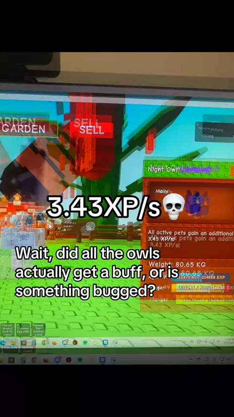 Gimana menurut kalian? sebelumnya itu 1.02XP/s dan tiba-tiba naik ke 3.43XP/s🗿 blood owl aku juga naik dari 0.75XP > 1-2XP💀 #roblox #roblox #robloxindonesia #growagarden #nightowl #bloodowl