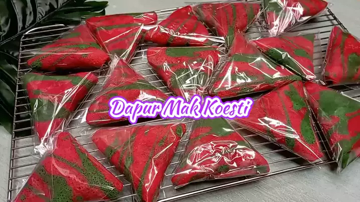 DADAR GULUNG SEGITIGA ISI VLA COKLAT (bisa jualRamadhan . #SnackStyle #Bakatkreatiffamily #jajanan #fyp #makanmakan BAHAN VLA : -300ml susu cair (me:2 saset SKM putih dicampur air 226ml) . -50gr coklat batang/DCC -15gr coklat bubuk . -30gr gula pasir . -25gr tepung maizena . -30gr Margarin . BAHAN KULIT DADAR: -300gr tepung terigu segitiga . -15gr tepung tapioka . -1/4gr garam . -600ml air . -3sdm minyak goreng . -pasta pandan secukupnya . -pasta red velvet secukupnya . PLASTIK OPP UKURAN 10x10