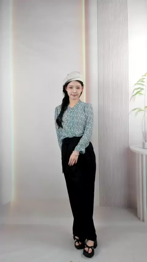 Kemeja motif bunga kecil🩵#promo # #koreanlookstyle #outfit
