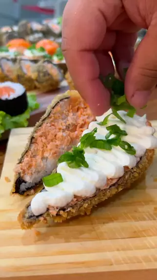 TEMAKI EMPANADO 🍱🍣 . A primeira dica que vou te dar é: DA UM TRABALHÃO FAZER EM CASA. Dito isso, vale a pena se você tiver com muita disposição 😂 - O arroz vem com todas as informações de preparo na embalagem. - Pra empanar, a pasta é uma parte de farinha de trigo pra uma de água gelada. 1/1. - Tem alguma outra coisa desse jantar que você quer que eu mostre fazendo aqui? ❤️ #receitas #comidajaponesa #comidas #Temaki #sushi