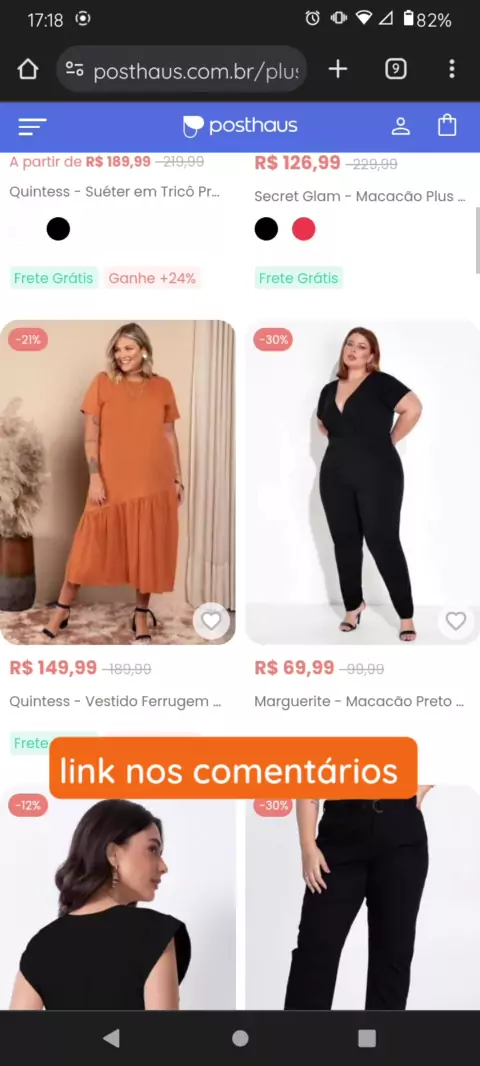 Na Posthaus esta com promoção de moda Plus size com até 70% Off , copie link nos comentários e cole em seu navegador Google para ir direto a esta página. #moda #plussize #looks #promoçao #achadinhos