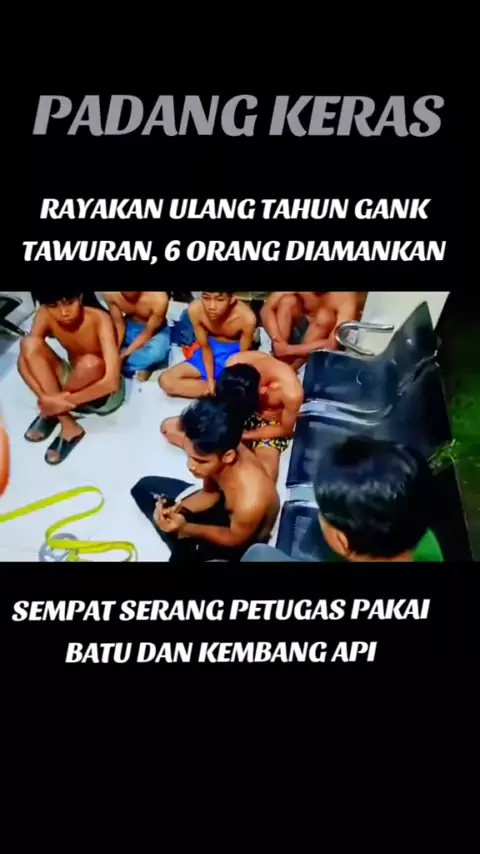 #polrespadangpariaman#padangkeras🔥#padangkeras#padangkerasbosku PADANG--Di duga pelaku tawuran, enam orang remaja di amankan oleh Personil Satuan Polisi Pamong Praja (Satpol PP) Kota Padang, pada Rabu (28/8/2024) dini hari. Berawal dari laporan Masyarakat yang tinggal di kawasan pasar Ambacang, Kecamatan Kuranji, melalui Padang Command Center (PCC) 112. Masyarakat sekitar resah dengan aktifitas mereka yang terlihat tengah berkumpul-kumpul dan terlihat remaja-remaja ini juga membawa peralatan...