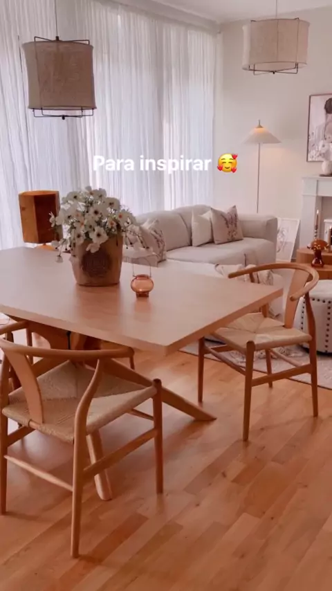 Decoração linda com paleta de cores claras! Amei o design estiloso das cadeiras da mesa de jantar 🥰 Um charme ❤️ #saladejantar #designdeinteriores #homedecor #decoraçao