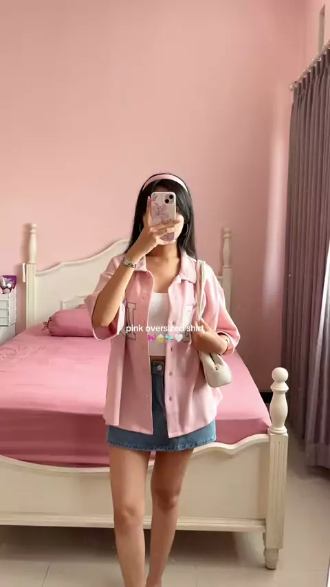 obsessed with this pink shirt🎀🤍 ARGHH soo cuteee!!🤏🏻#kemeja#kemejapink#kemejaoversize#kemejawanita#oversizedshirt