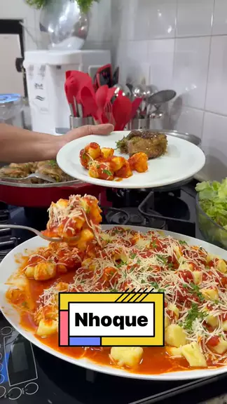 Nhoque 1,5 kg de batata asterix 02 gemas 1 ½ copo americano de amido de milho 150 gramas de parmesão ralado 02 colheres (sopa) de manteiga derretida Sal a gosto Molho de tomate Parmesão ralado para finalizar Cheiro verde #receitas #amo #amocozinhar #deliciasdaeleni