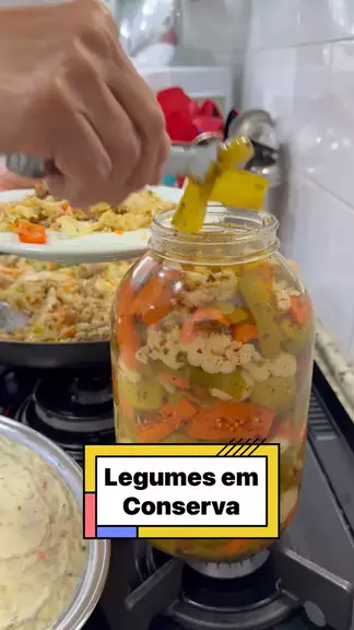 Legumes em Conserva 500 gramas pimenta doce ½ maço couve 400 gramas jiló 400 gramas cenoura 250 gramas mini cebolas 700 ml água 700 ml vinagre de álcool 01 colher (sopa) pimenta calabresa 01 colher (sopa) orégano 05 dentes de alho 01 colher (sopa) sal ½ xícara (chá) azeite #receitas #amo #amocozinhar #deliciasdaeleni