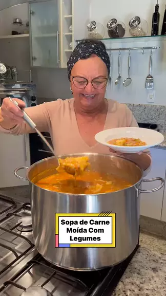 Sopa de Carne Moída Com Legumes 05 colheres (sopa) de óleo 02 kg de carne moída 07 dentes de alho 1,2 kg de tomate para molho sem pele Pimenta do reino a gosto Pimenta ardida a gosto Sal a gosto 800 gramas de cenoura 1,2 kg de chuchu 01 kg de mandioquinha salsa 1,2 kg de batata 1,5 kg de batata doce ½ repolho 500 gramas de macarrão 01 maço de cheiro verde #receitas #amo #amocozinhar #deliciasdaeleni