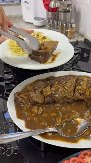 Filé ao Molho Ferrugem 02 Kg Filé Mignon; 300 Gramas Cogumelo Paris; 200 ML Vinho Branco; 200 ML de Água; 30 ML Molho Inglês; 1/2 Maço de Salsinha; 02 Galhos de Alecrim; 02 Colheres (sopa) Amido de Milho; 02 Colheres (sopa) Manteiga; 01 Cebola; 03 Colheres (sopa) Azeite; 01 Colher (café) Pimenta do Reino; 03 Dentes de Alho; Sal a Gosto; #receitas #amo #amocozinhar #deliciasdaeleni
