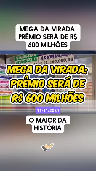Mega da Virada: Prêmio será de R$ 600 milhões, o maior da história Fonte: jovem pan 11/11/2024 #ultimasnoticias #noticias #megadavirada #megasena