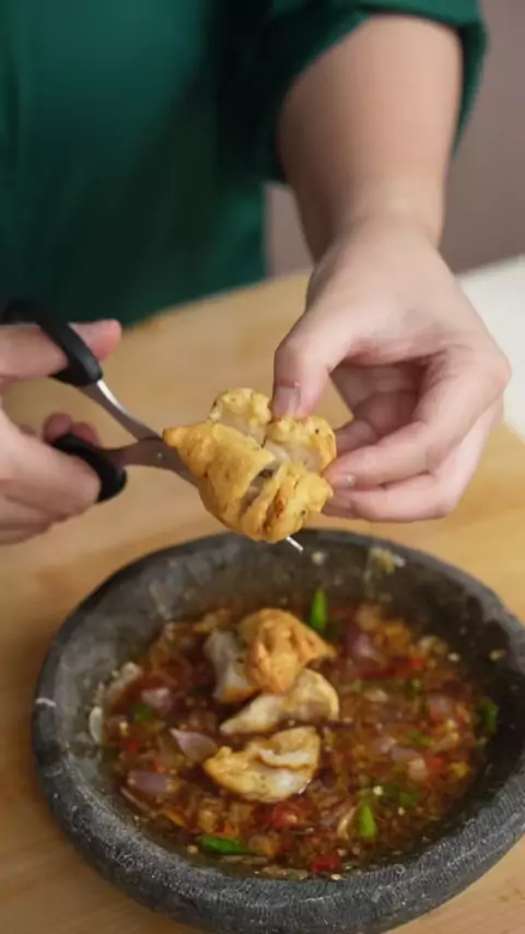 Siapa suka baso goreng? Tapi pernah ga cobain baso goreng dikasi kuah tahu gejrot? Sebenernya tipsnya cuma satu, bakso gorengnya harus garing dan biasa aku bikinnya pake tepung sagu tani super. Cobain deh bikin! bahan baso goreng : - Fillet paha ayam 250gr - Bawang putih 3 siung - Garam 1sdt - Kaldu bubuk 1 sdt - Baking powder 1/2sdt - Lada bubuk 1/2sdt - Telor 1 - Tepung @Kuya Kuya Super 170gr - Es btu 100gr - Minyak Wijen Bahan kuah tahu gejrot : - 250ml air - 1 sdm asam jawa - 1 gula mer...