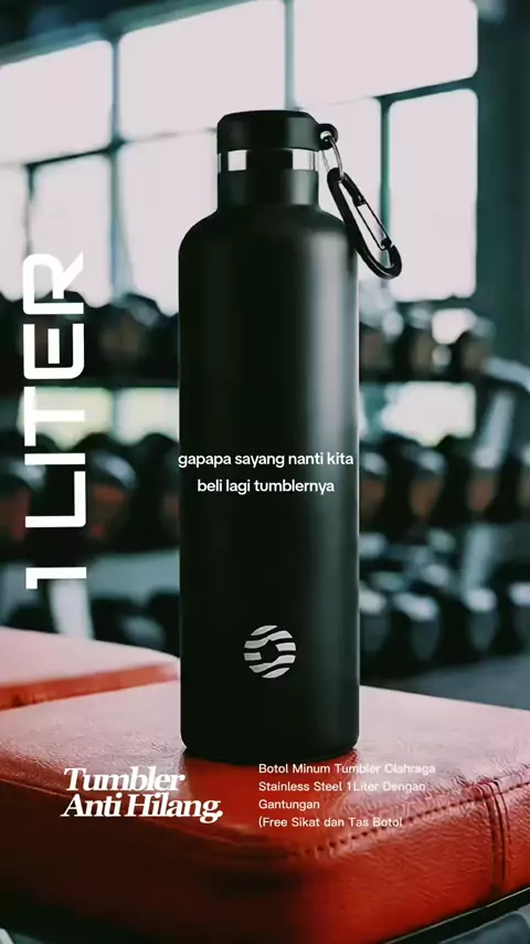Botol Minum Tumbler Olahraga Stainless Steel 1Liter Dengan Gantungan (Free Sikat dan Tas Botol) . . #tumbler #tumblerviral #tumblerstainless #promomakangajian