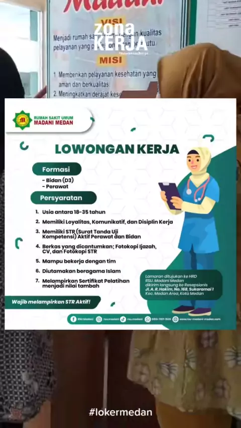 Lowongan kerja di RSU Madani Medan sebagai Bidan dan Perawat kirimkan lamaran kamu langsung ke alamat terlampir#zonakerja#lowongankerja#lowongankerjamedan#lokermedan#lokermedanterbaru#lokersumut#karirsumut#lokerbumn#lokerbank#lokercpns#lokersiantar#lokertoba#lokersamosir#lokertaput#lokerrumahsakit#lokerkesehatan#lokertenagakesehatan#lokerperawat#lokerbidan#lokernakes#rsumadanimedan#lowongankerjakesehatan#lokerkesehatanmedan#rumahsakitmadanimedan#sumut#kotamedan#kotabinjai