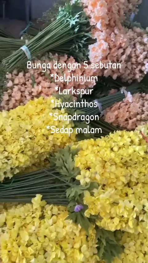 Sampai bingung mau kasih nama, ada yang sebut snapdragon, hyacinthos, larkspur, delphinium, dan sedap malam. Kalian sebutnya apa? Yg jelas cakep utk dekorasi karena tangainya panjang midah dibentuk. Silahkan diorder ya #snapdragon #hyacinthosjumbo #delphinium #larkspur #sedapmalam #artificialflowers