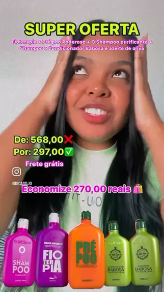 AMANHÃ 🎉🛍️ Estoque limitado! No App vizinho @dicasdjo 👈🏽 Kit Fioterapia com 270 ,00 de desconto 😲 #Fioterapia #cabelo #cronogramacapilar #alisada #cabeloliso