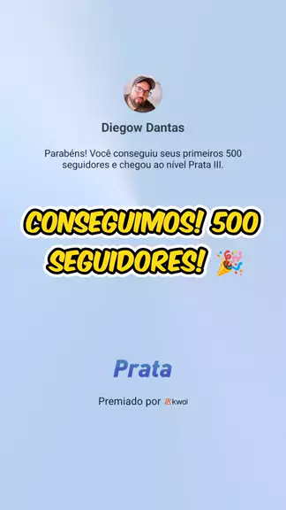 Gente, eu estou sem acreditar! đ± Acabei de bater 500 seguidores e cheguei ao NĂvel Prata III! Ontem era um sonho, hoje Ă© realidade graças a cada um de vocĂȘs que me acompanha. De grĂŁo em grĂŁo a gente chega lĂĄ! Rumo aos 1k agora? đđ #conquista #kwaiprata #gratidĂŁo #rumoao1K #nivelprata