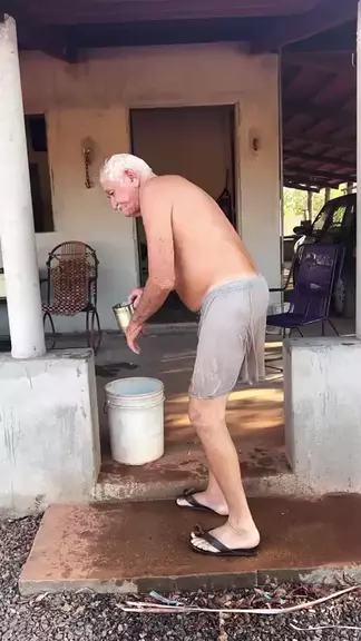bastião tomando banho ao ar livre