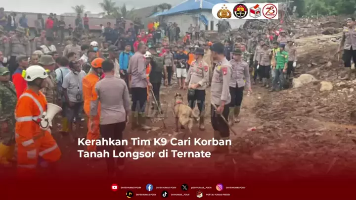 Polri melalui Polda Maluku Utara (Malut) menerjunkan anjing pelacak dari Tim K9 untuk mencari korban yang tertimbun akibat banjir bandang dan tanah longsor di Kelurahan Rua, Kota Ternate, Malut. Dengan bantuan alat berat dan Tim K9 diharapkan dapat menemukan para korban yang masih tertimbun di lokasi bencana alam.