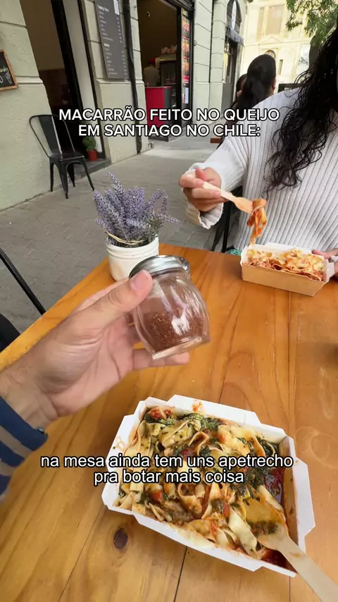 Macarrão feito no queijo em Santiago no Chile, comeriam?! Fica pertinho do cerro Santa Lúcia esse é o Mas Quesso 😋😋