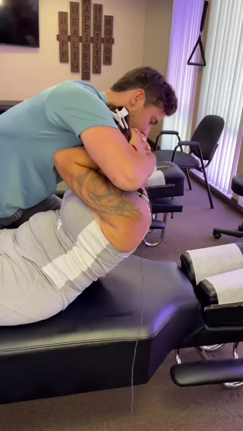 Huge mid back cracks with @realoldspiceweswear #DontSpillChallenge #chiropractor #adjustment #