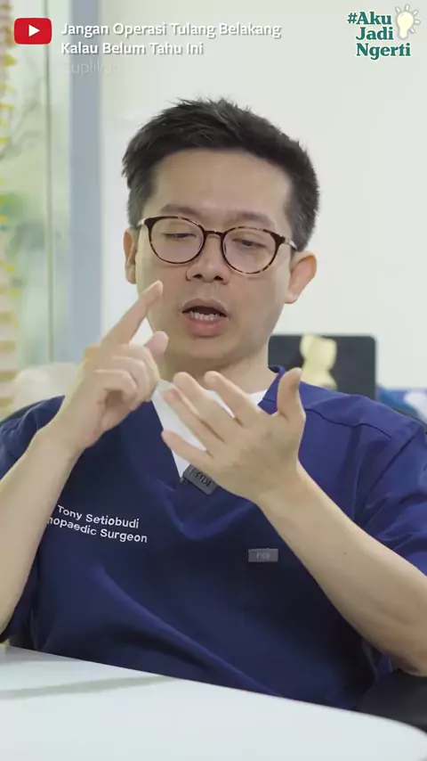 Dok, punggung bawah saya nyeri tidak kunjung hilang sudah 2–3 bulan. Apakah harus operasi? 🤔 Eitts… jangan terburu-buru! Tidak semua nyeri punggung membutuhkan operasi. Beberapa kondisi justru lebih tepat ditangani dengan cara konservatif, termasuk nyeri punggung bawah kronis. 👉Mau tahu kondisi tulang belakang apa saja yang tidak perlu operasi? Tonton video lengkapnya di #drtonysetiobudi #infokesehatan #SakitTulangBelakang #NyeriTulangBelakang #OperasiTulangBelakang #AlternatifOperasi...
