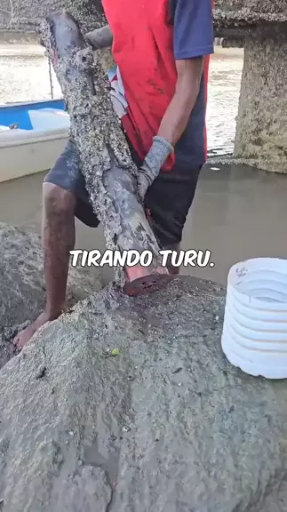batendo o tronco na pedra pra tirar os turus.