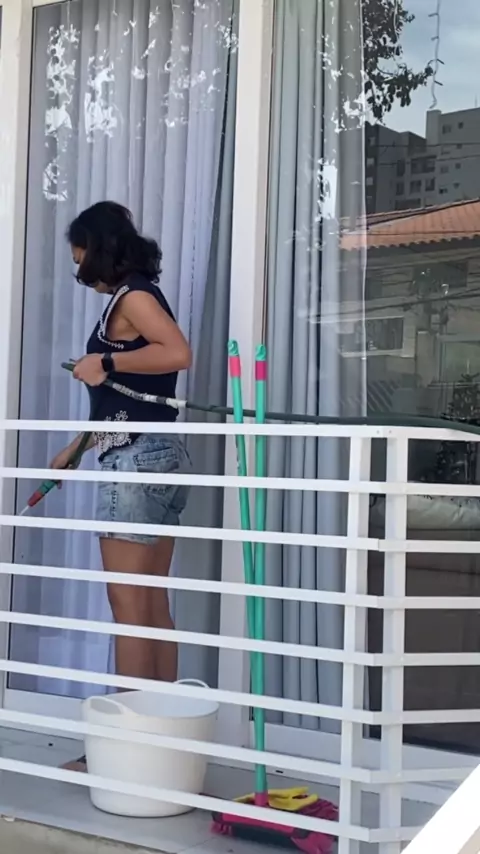 Lavei as porta de vidro com detergente neutro e uma vassoura macia prático e rápido! #donadecasa #dycasdacarla #faxina
