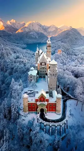 Bem vindos ao Winter Wonderland. 🏰❄️ 📍Castelo de Neuschwanstein, Alemanha 🇩🇪 #lugareslindos #Viagens #turismo #drone