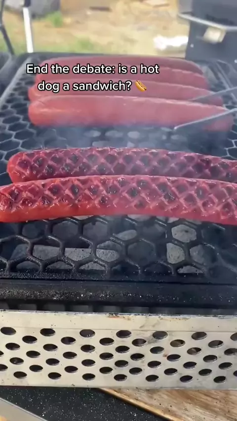 Is a hot dog a sandwich? (vc: @cooking_with_fire) #hiphop#hotdog#hotdogs#isahotdogasandwich#grilltok#grilling#grillmaster#grillnation#food#yum
