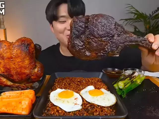Mukbang mie telor dan steak jumbo#steak#koreanfood#mukbang