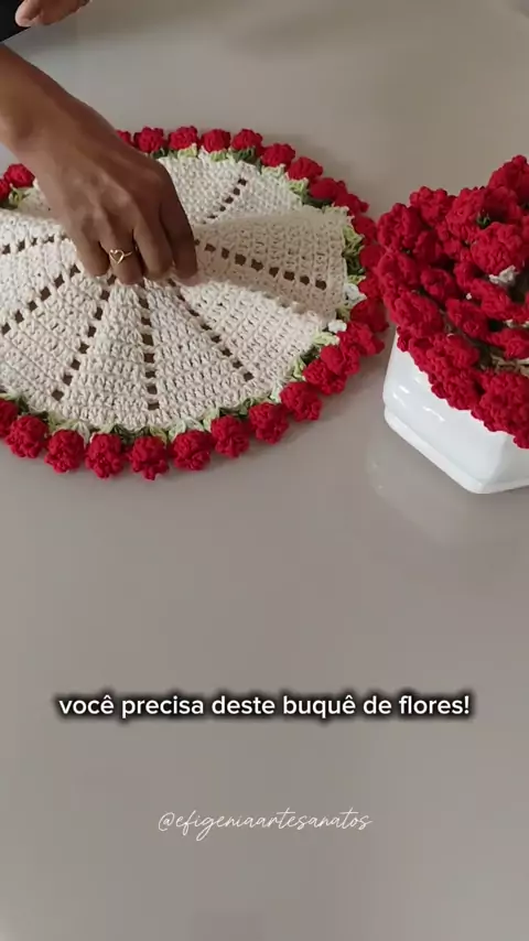 marque o @ nos comentários que vai te dar um desse🌹 #buquedecroche #buquedeflor #efigeniaartesanatos #sousplatdecrochê #croche