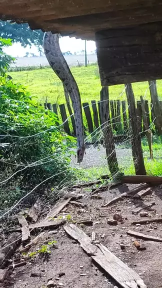 Cobra tentando descer do chiqueiro #cobra #jiboia #snake #jibóia #predador