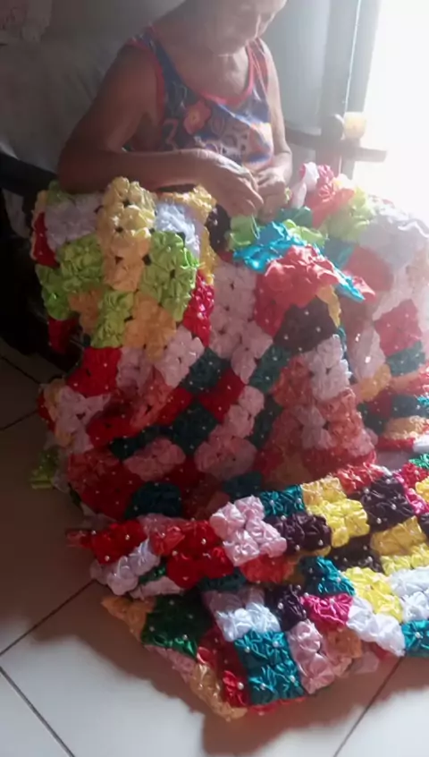 Minha MÃE ama fazer fuxico. Fazendo uma colcha. Ela tem alzaimer..é bom pra estimular a memoria. COLCHA DE CASAL TODA FEITA A MAO.