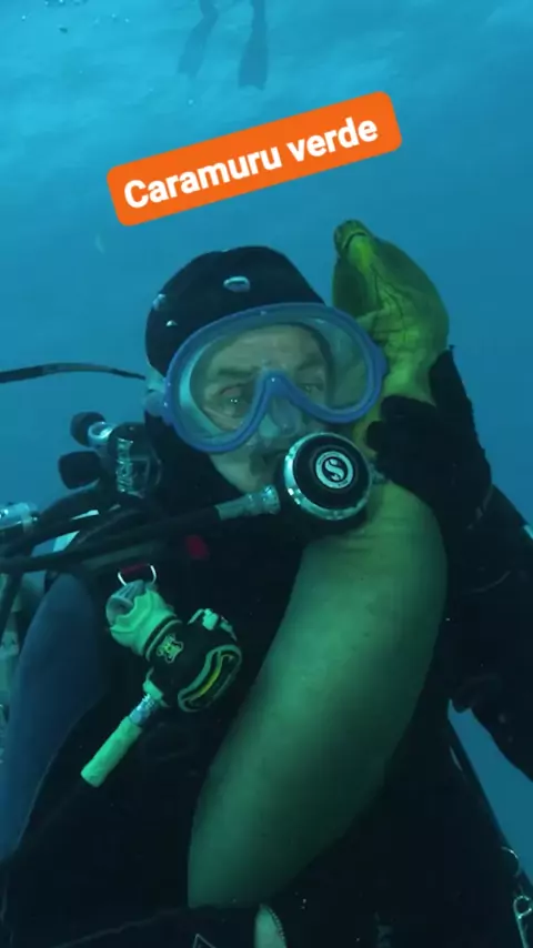 O Mergulhado brincando com um Caramuru verde ๐๐๐๐ซฃ๐ซฃ๐ซฃ