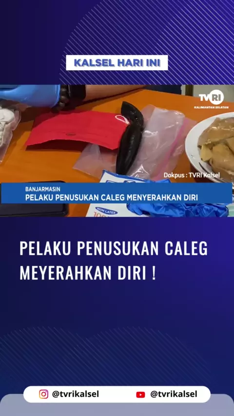 PELAKU PENUSUKAN CALEG MEYERAHKAN DIRI ! #berita #berita #beritaviral #berita #viral #kalsel #beritaterkini Saksikan Siaran TVRI Kalsel Melalui: *Channel digital: Banjarmasin Ch. 30 UHF Haruai Ch. 27 UHF Kotabaru Ch. 30 UHF Kandangan Ch. 29 UHF *Live streaming TVRI Kalsel *TVRI Klik Kalsel www.klik.tvri.go.id *Satelit Merah Putih Telkom 4