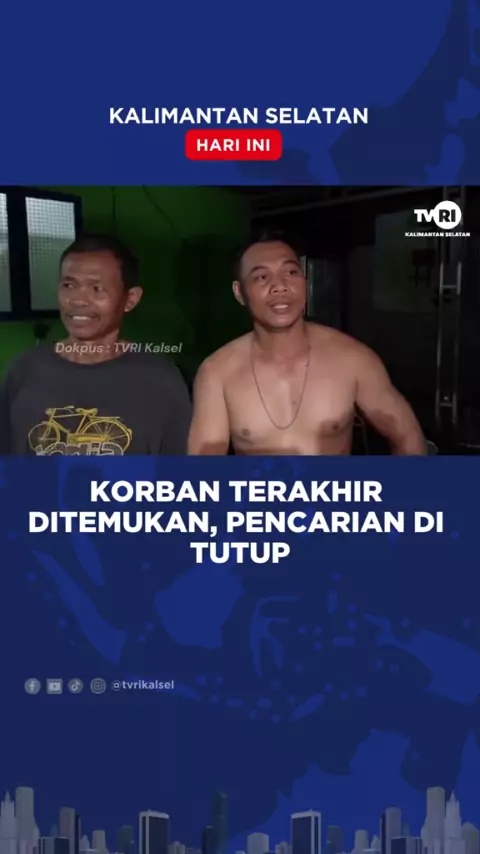 KORBAN TERAKHIR DITEMUKAN, PENCARIAN DI TUTUP #berita #berita #beritaviral #berita #viral #kalsel #beritaterkini Saksikan Siaran TVRI Kalsel Melalui: *Channel digital: Banjarmasin Ch. 30 UHF Haruai Ch. 27 UHF Kotabaru Ch. 30 UHF Kandangan Ch. 29 UHF *Live streaming TVRI Kalsel *TVRI Klik Kalsel www.klik.tvri.go.id *Satelit Merah Putih Telkom 4