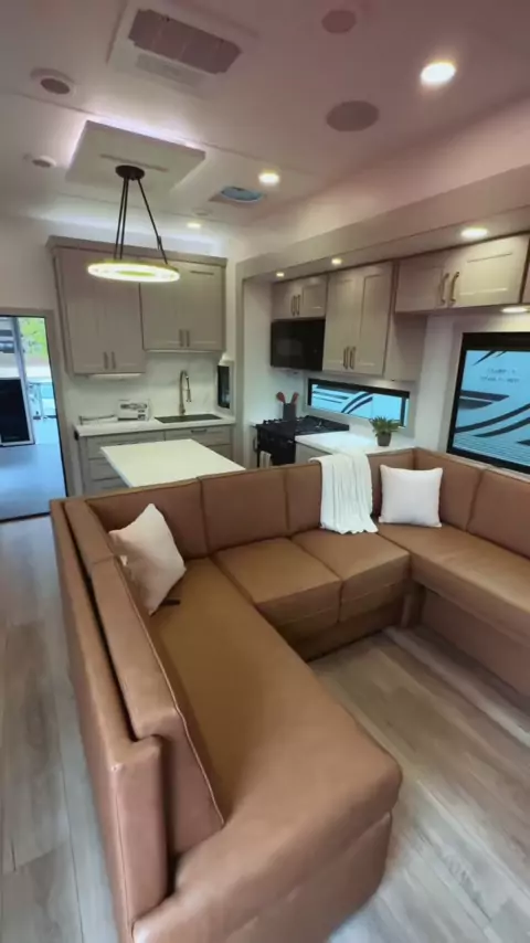 Meu RV favorito agora. O que você acha do novo Brinkley Modelo G 3950? Confira este belo passeio de RV! # luxuryrv RV de luxo # homeonwheels # houseonwheels # rvtour # hometour # brinkley # rvliving # motorhome # rv # luxurylifestyle RV # motorhometour # insane # homeideas RV tour # rvlife # fifthwheel