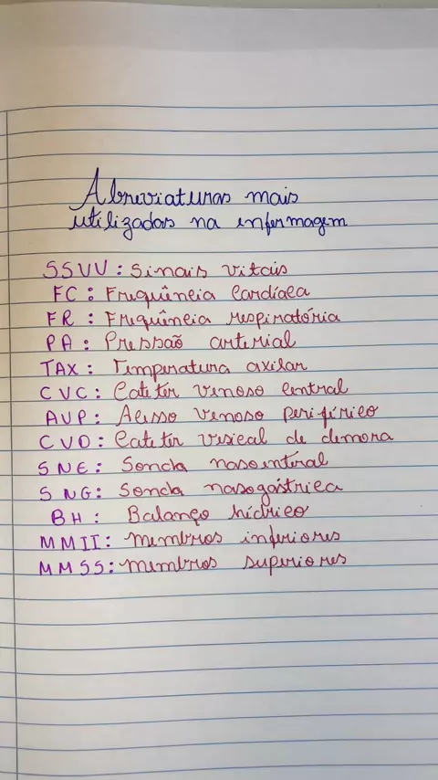 Abreviaturas mais utilizadas na enfermagem #enfermagem #dicas