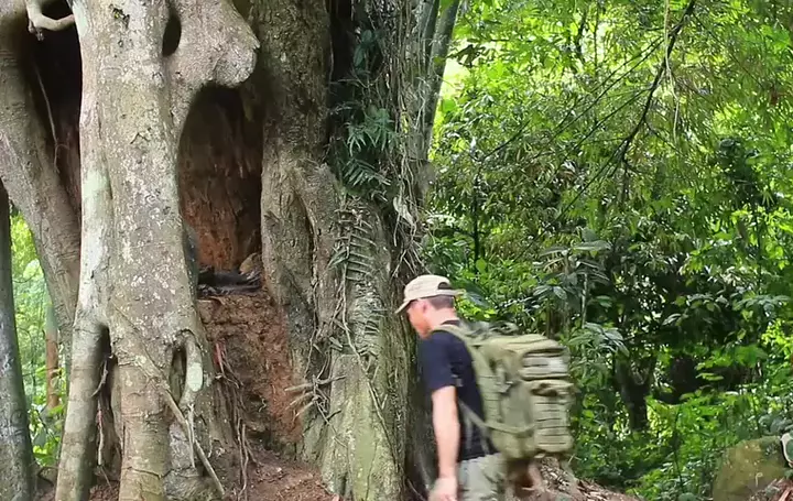 Esse homem está construindo um abrigo dentro de uma velha árvore para se proteger do frio e dos perigos da floresta, assista ao vídeo e veja veja resultado final #sobrevivencia #campamento #campamento #arlivre #sobrevivencianaselva