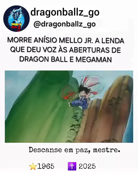 Notícia triste para o universo geek. Faleceu Anísio Mello Júnior, a voz lendária por trás de aberturas inesquecíveis de Dragon Ball e Megaman. Sua voz marcou gerações e fez parte da infância de milhões de fãs. Hoje, o céu ganha mais uma estrela, e o mundo geek se despede de uma verdadeira lenda. Descanse em paz, mestre. ⭐️1965 ✝️ 2025 #AnisioMelloJunior [Curta a página! 😉] #anime #animememes #animeedits #dragonballedits #dragonball #dragonballz #dragonballzkai #dragonballgt #dragonballsuper #...