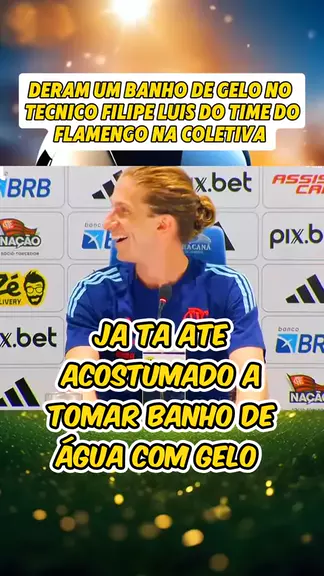 Dão banho de água com gelo em Filipe Luis na coletiva #FLAMENGO #filipeluis #mengão #caRIOca #ultimasnoticias