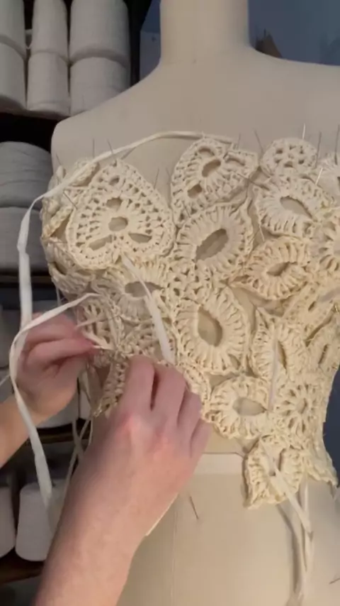 Finally crocheting my first wedding dress sketch from 3 years ago#bride#bridaldesigner#crochetweddingdress#bespokebride