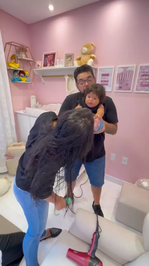 Secando o cabelo da nossa filha de 7 meses de Vida . . #viral #maternidade #humor #bebe #rotina