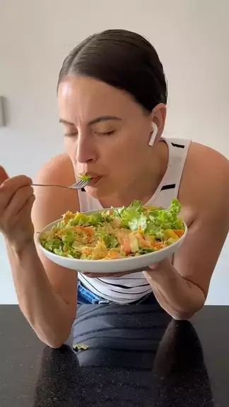 1 ovo cozido e 1 clara 1/2 limão espremido 1 colher de requeijão light, sal e salsinha. Mistura no mix e reserva Usei na salada: Alface, tomate picadinho, pepino cenoura ralada e manga. 100g de macarrão 110g de filé de frango desfiado Uma ótima opção para o verão! #premiokwai2025 #saladas #comidaboa #saudavel #brasileirão2025